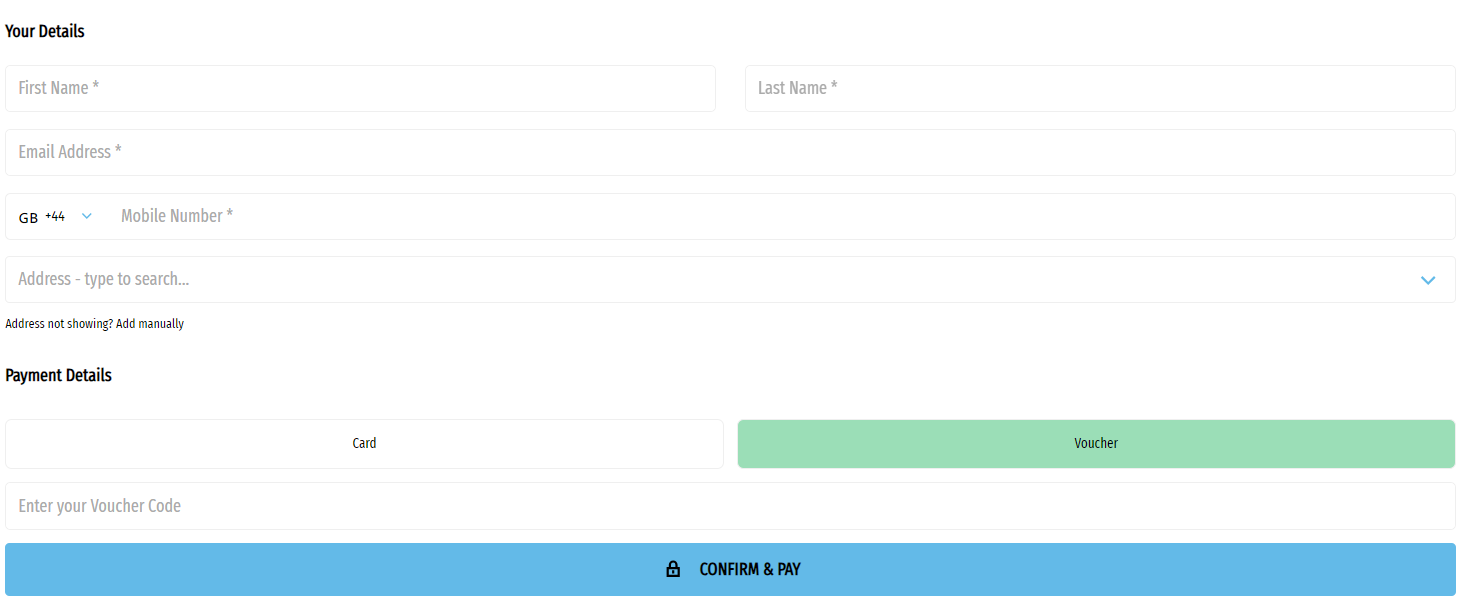 When you are checking out, you will see two payment options, “card” and “voucher”. Click on voucher and enter your voucher code number. If there is a balance outstanding, you will need to enter your payment card details in the card section.