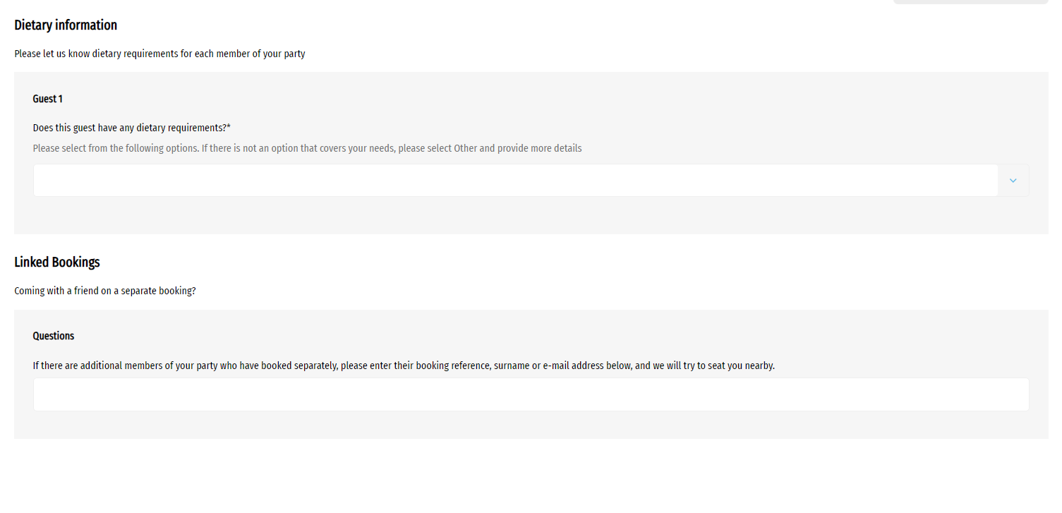 When you book online, there is an option to link bookings together after you have selected your dietary requirements.